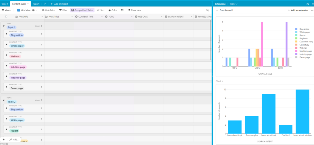 You can use it in parallel with the content calendar template (Airtable), to keep track of content production while populating the inventory matrix.